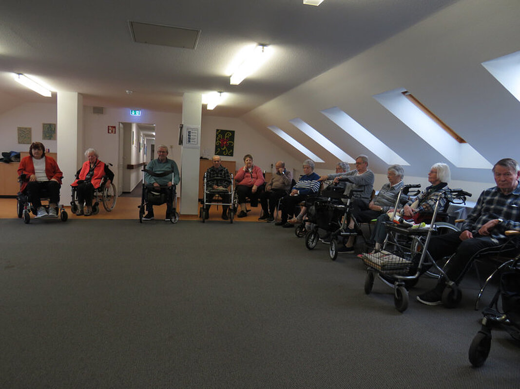 Seniorengymnastik am 03.04.2025 Bei den regelmäßigen Gymnasktikrunden haben unsere Bewohnerinnen und Bewohner am Vormittag sehr viel Freude und tanken ihre Energie für den Tag. Heute haben wir unser Schwungtuch geschwungen.