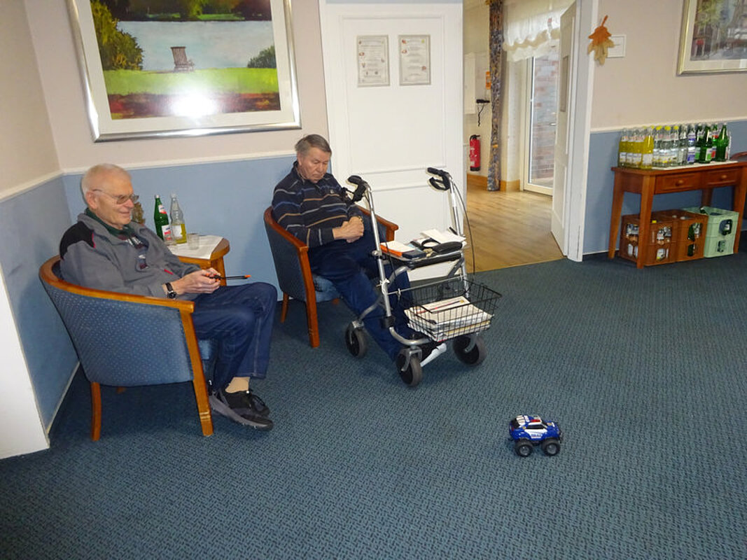 Feinmotorik am 08.11.2025 Jeden Samstag wird die Feinmotorik unserer Bewohnerinnen und Bewohner auf die Probe gestellt. An diesem Tag spielerisch, mit unseren ferngesteuerten Autos und jeder Menge Spaß.