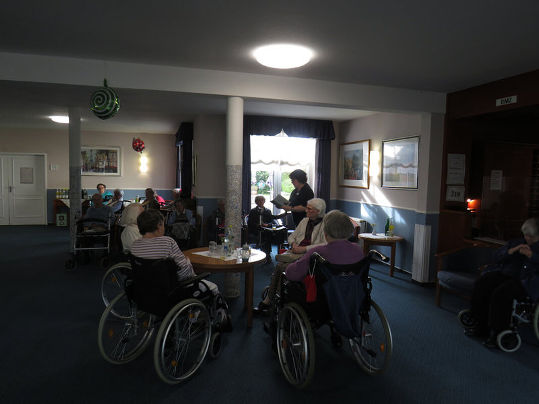 Lichterfest am 10.11.2025 Unser Lichterfest brachte die Augen unserer Bewohnerinnen und Bewohner zum Strahlen. Gemütliche Beleuchtung und gebastelte Dekoration waren herrlich anzusehen. Gemeinsam wurde gesungen und spannenden Geschichten und Gedichten gelauscht.