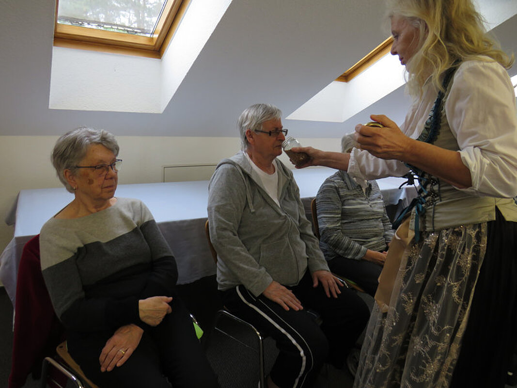Kräuterhexe am 05.11.2025 Die Kräuterhexe Doris Fölster brachte unsere Bewohnerinnen und Bewohner mit ihrer Kräuterkunde zum Staunen. Mit Riechen, Schmecken und Fühlen brachte sie alle Sinne in Schwung.